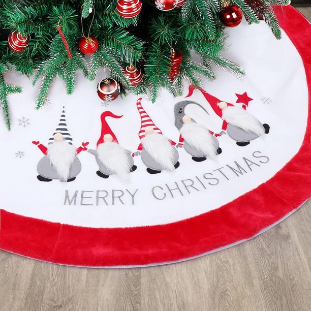 S Deal 48 Inches Christmas Tree Skirt With Red Border Trim Plush Gnome Tree Skirt For Christmas Holiday Party Decorations Walmart Com